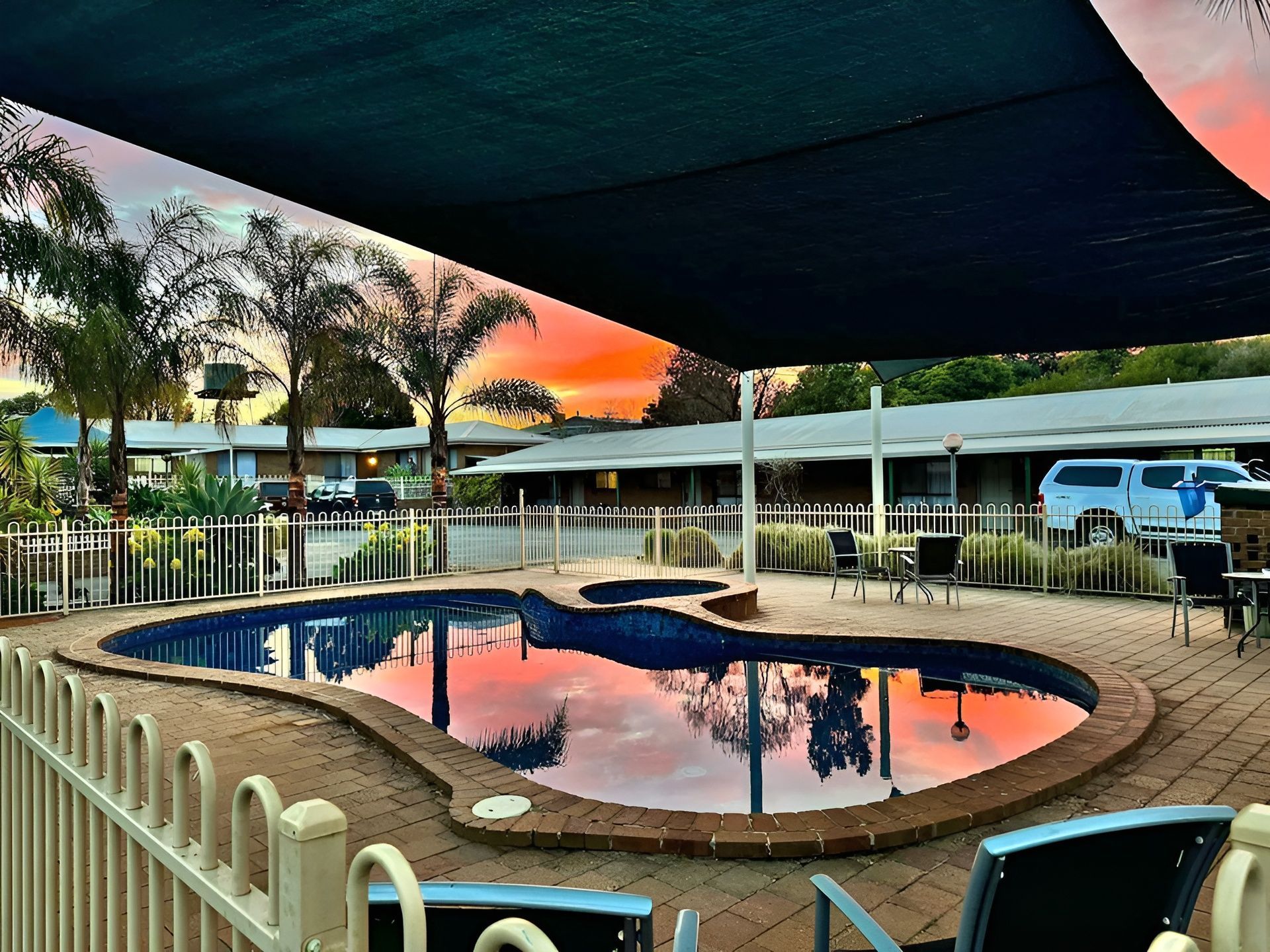 Our spacious accessible Room have a Queen Size bed, a Single Bed, table and chairs, bar fridge, microwave, flat screen television, electric blankets and a kitchenette with tea & coffee making facilities, walk-in shower, shower stool, and lowered vanity. Our accessible room offers convenient access directly from the car park and features pool and garden views, with an outdoor dining set for you to relax and enjoy the surroundings.